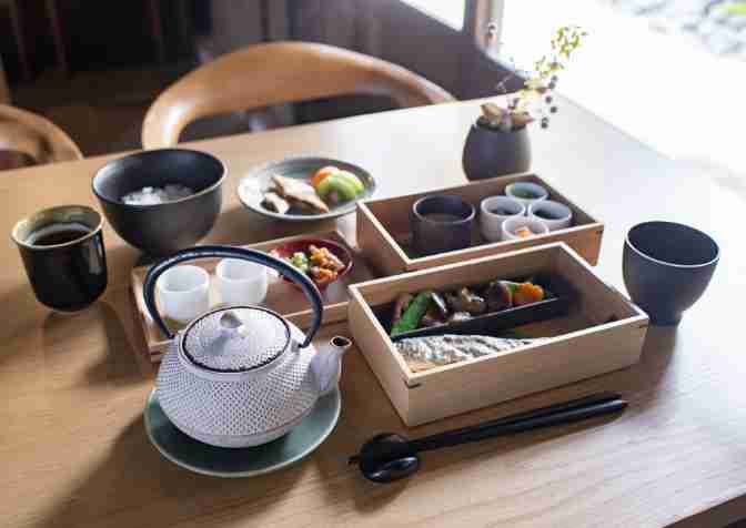 ご朝食前には、目覚めに凛とした気持ちになるための朝抹茶をおすすめしています。お抹茶は実は簡単に作っていただけますので、ご自身で立ててお楽しみください。天気の良いときはテラスでの抹茶もお楽しみいただけます。