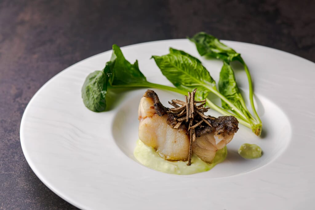 福岡県産蕪と鮮魚 白ワインと生姜のソース