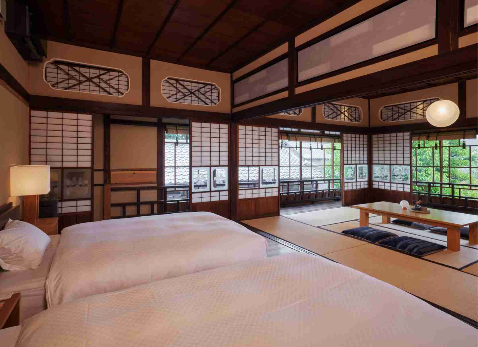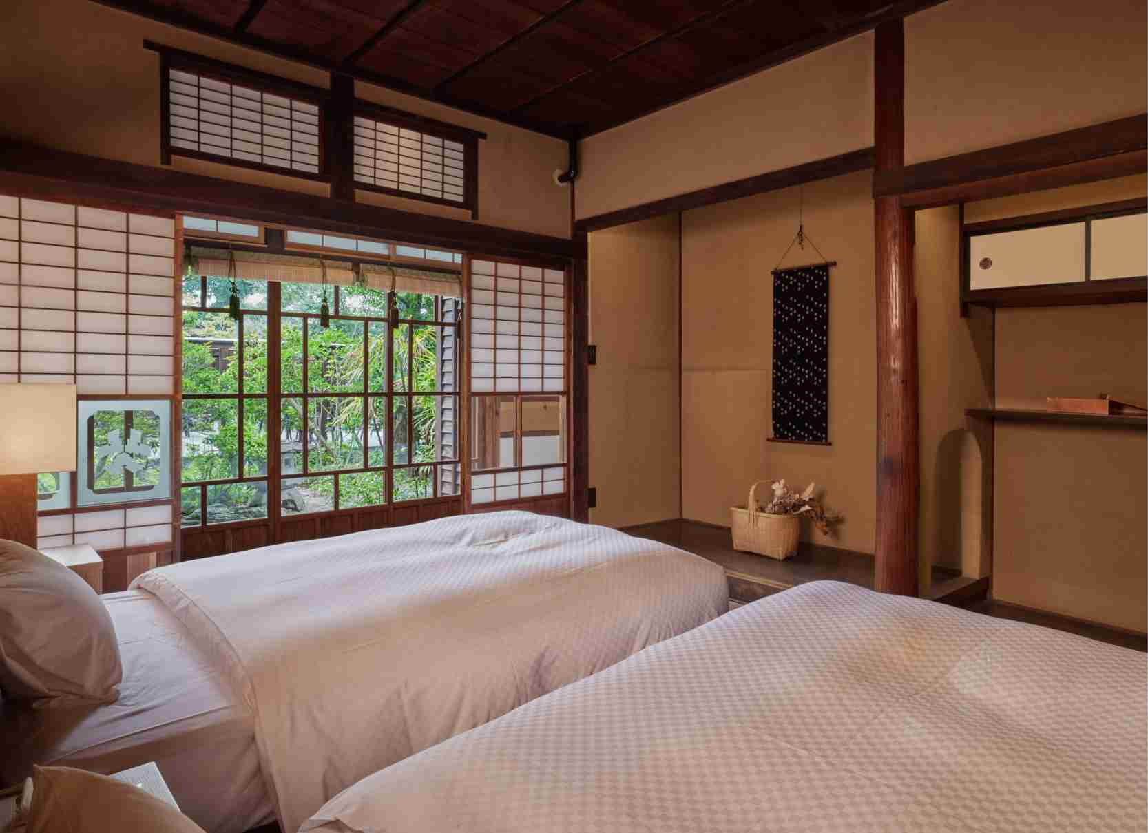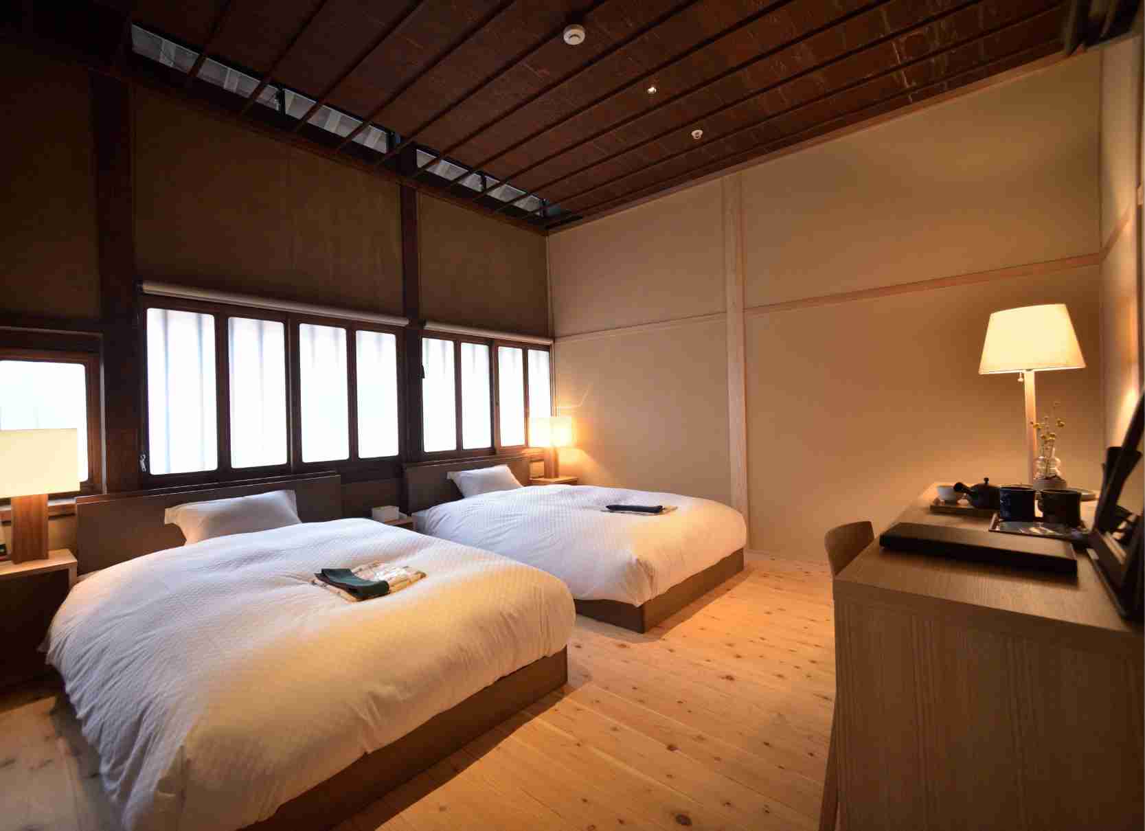 山紫水明の地「八女」に創業して約200年を迎える老舗蔵元のひとつ「喜多屋」。当時の窓枠やガラス、梁はなるべくそのままに修繕をし、フロントとレストラン機能を備えた3室の客室として生まれ変わりました。併設のバーでは、蔵元・喜多屋の日本酒や本格焼酎を楽しむことが出来ます。