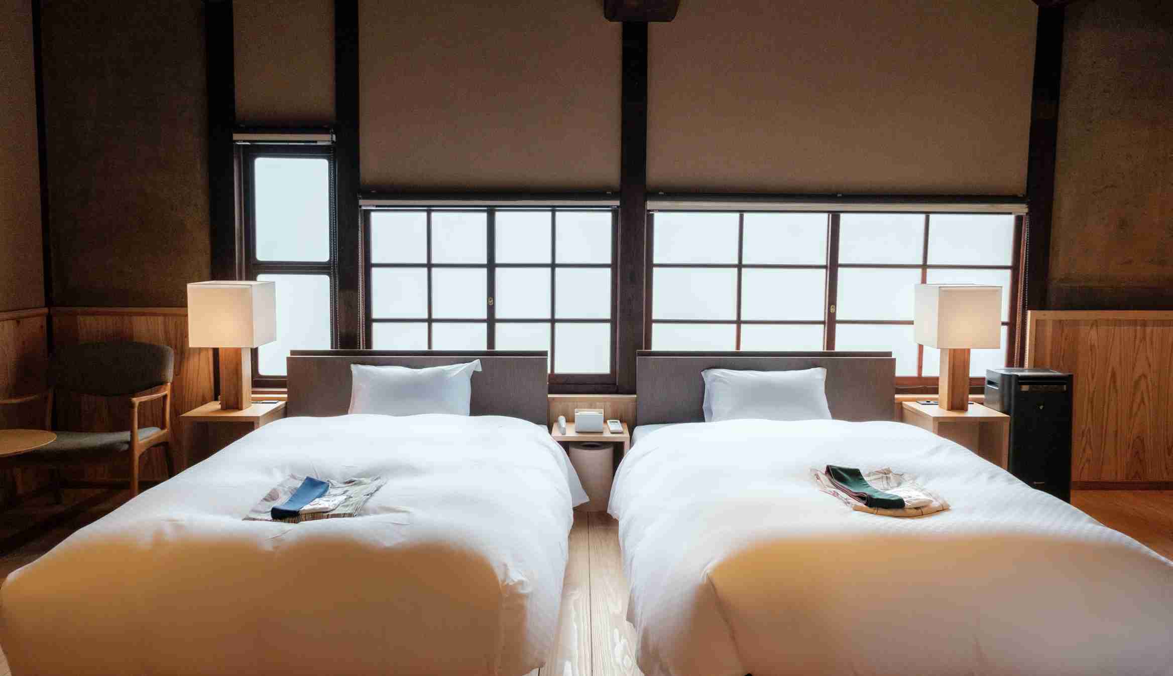 | 客室備品/アメニティ | サータ社製ベッド/バスルーム/高速インターネット回線(WiFi)/冷蔵庫/ミニバー/電気湯沸しポット/ヘアドライヤー/洗浄機能付きトイレ/金庫(一部客室を除く)/加湿器/タオル類/浴衣/足袋/スリッパ/歯ブラシ/シャンプー/コンディショナー/ボディタオル/ボディソープ/石鹸/スキンケアセット/コットン/綿棒/ヘアブラシ/シャワーキャップ/髭剃り |